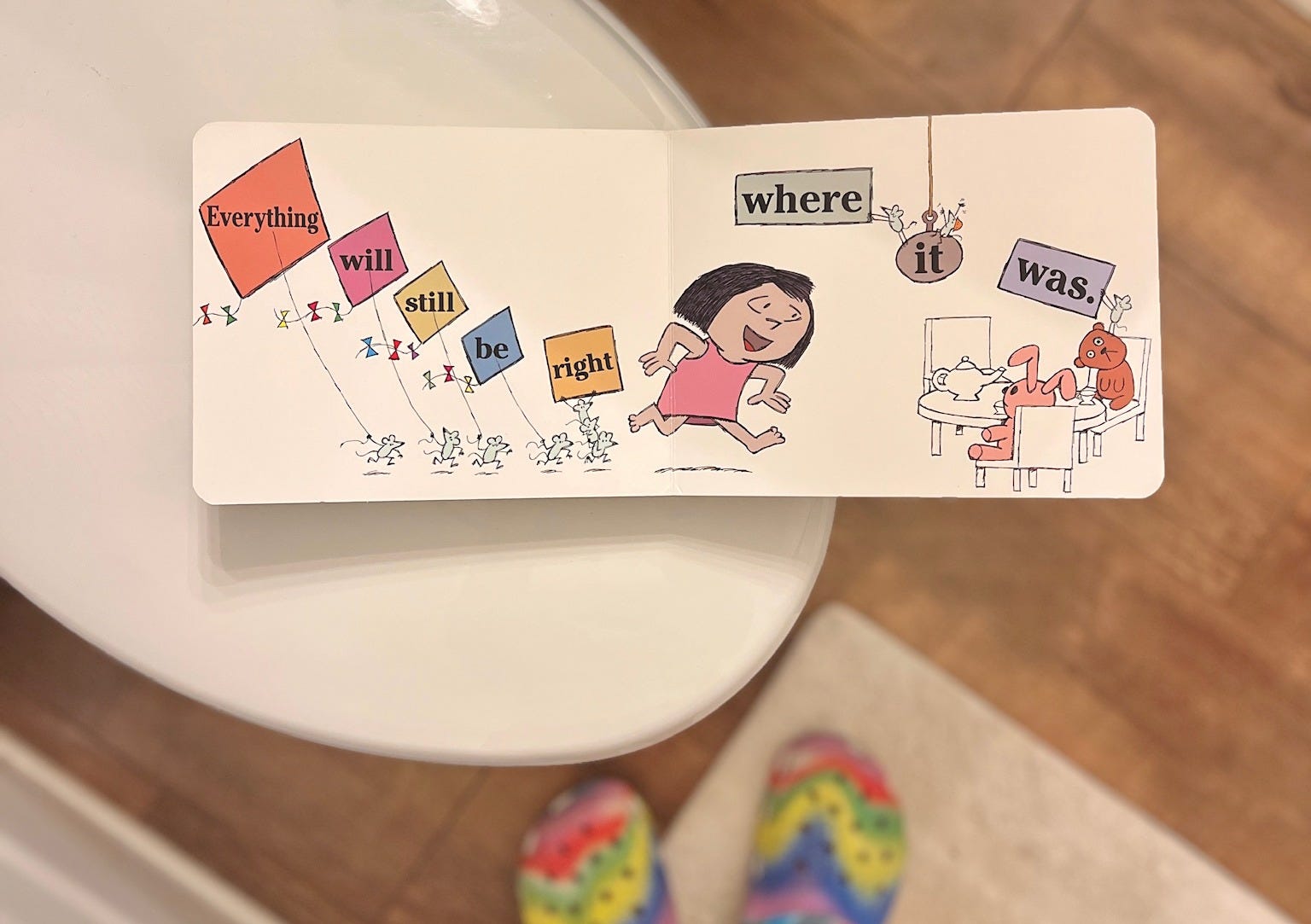 In Mo Willems book, Time to Pee! (which I’ll never not be able to recite from memory because of the countless times I read it to my toddler on the potty last summer), he writes: “Everything will still be right where it was.”